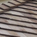 'Refined Beauty' best describes the Cedar Shingle. Western Red Cedar Shingles are sawn wood tiles for use on roofs and walls. They come in three sizes - 16",18" and 24" and each size has their own trade name. 16" shingles are called "Five X" (5X), 18" are "Perfections" and 24" are known as "Royals". These terms have been used for over 100 years.